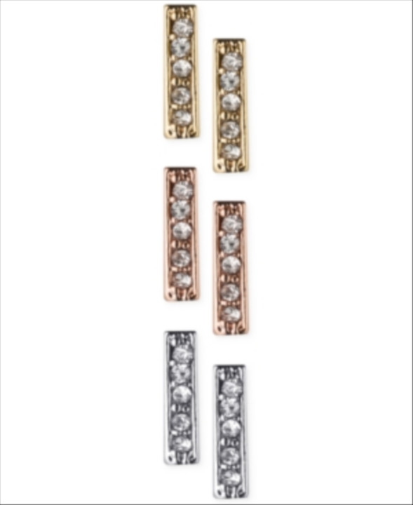 | Rachel Rachel Roy Tri-Tone Trio Pave Bar Earring Set, $26 |