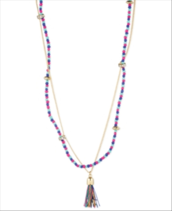 | Rachel Rachel Roy 12k Gold-Plated Multi-Color Mixed Bead Tassel Pendant Necklace, $16 |